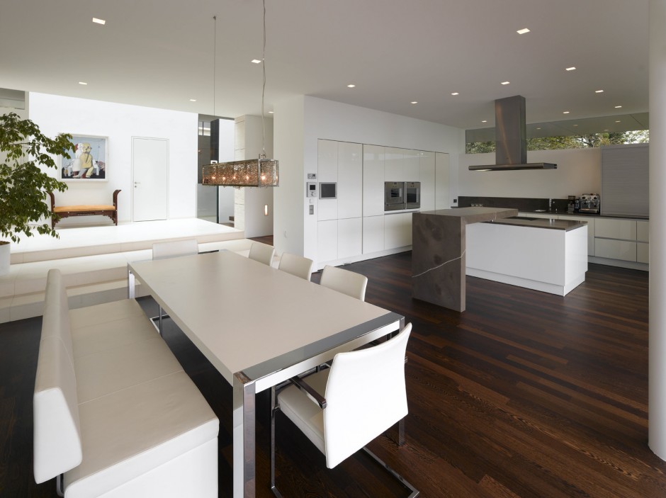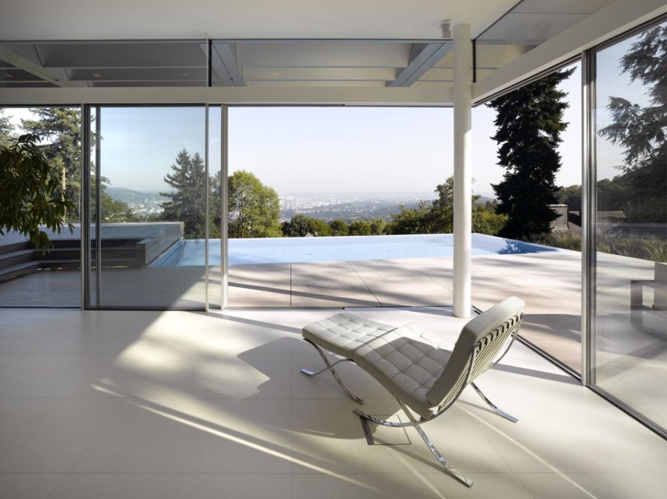 在電訊小池塘one is invited to take a view of the市全景breathtaking之前進入中央大廳of the House。following the topography of the site is the House部分caved in the ground。餐飲區with an open the廚房is reached by taking a few steps down from the中央大廳。有一對夫婦從of steps導致area where one can舒適沙發或椅子的休息室休息室on the overlooking the游泳池和enjoying the view over the市好了。地板材料是distinguished according to level and函數。